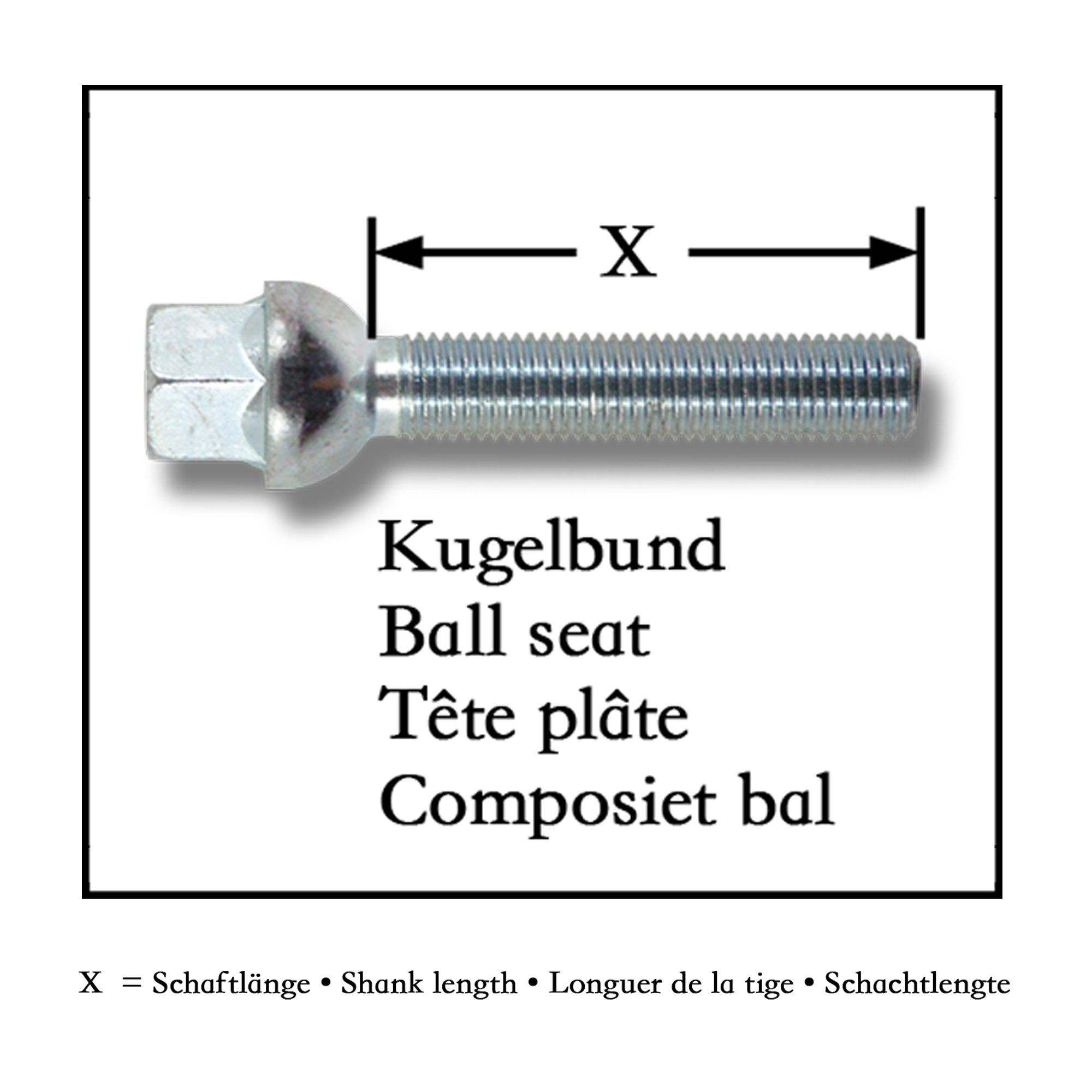 Kit de 10 Vis, Boulons, boulonnerie longue M 12 x 1,5 45 mm pour les cales d'élargissement de voie de roue, jante, boulonnerie Assise / collet sphérique - Qualité Allemande.
